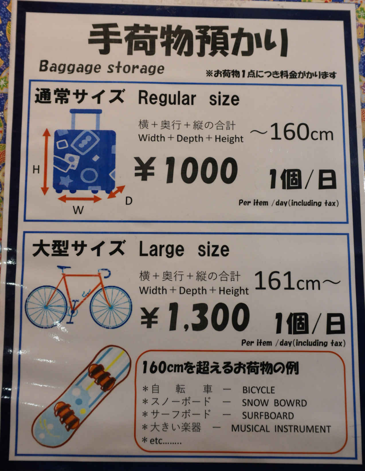 <行李寄放櫃台>(左圖)/<行李寄放計費方式>(右圖)