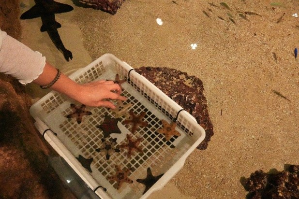 觸摸之池是最受小朋友們歡迎的區域,有可以溫柔觸摸的小鯊魚以及海星,還有小魚會輕啄你的手掌,非常有趣~(觸摸前記得先洗手喔)
