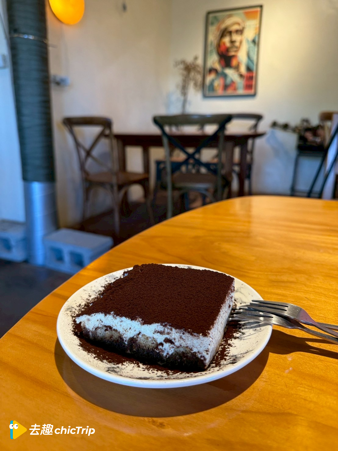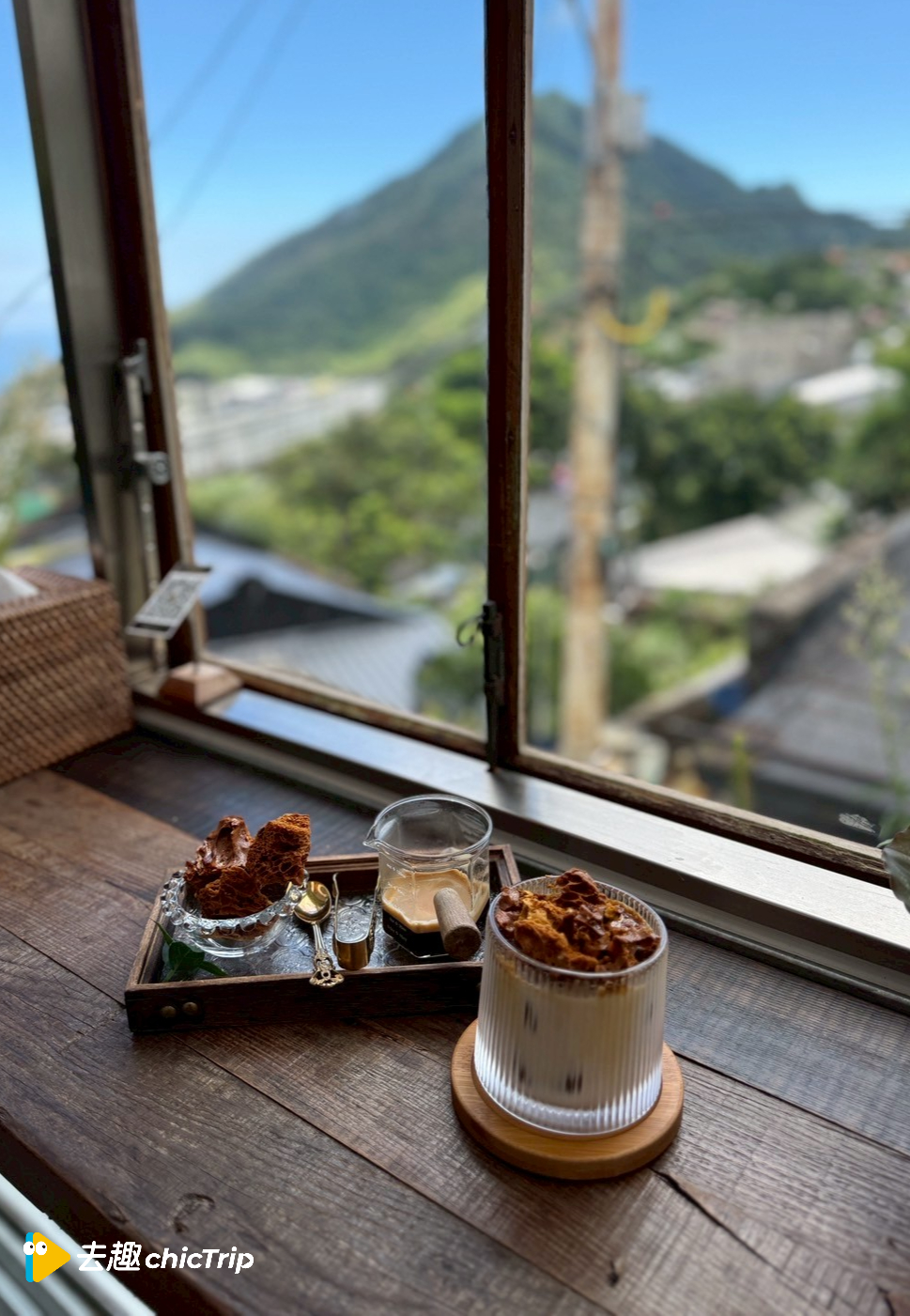 走進店內,透過窗戶便能望見黃金瀑布下游的潺潺水流,坐在窗邊點一杯咖啡,任由水聲與山城的自然節奏陪伴午後時光。這樣一段結合老屋風景與瀑布景觀的咖啡時光,讓人不自覺慢下腳步,享受專屬於金瓜石的悠閒片刻。 小提醒:使用去趣優惠,消費滿$1,000,就能兌換一份提拉米蘇~