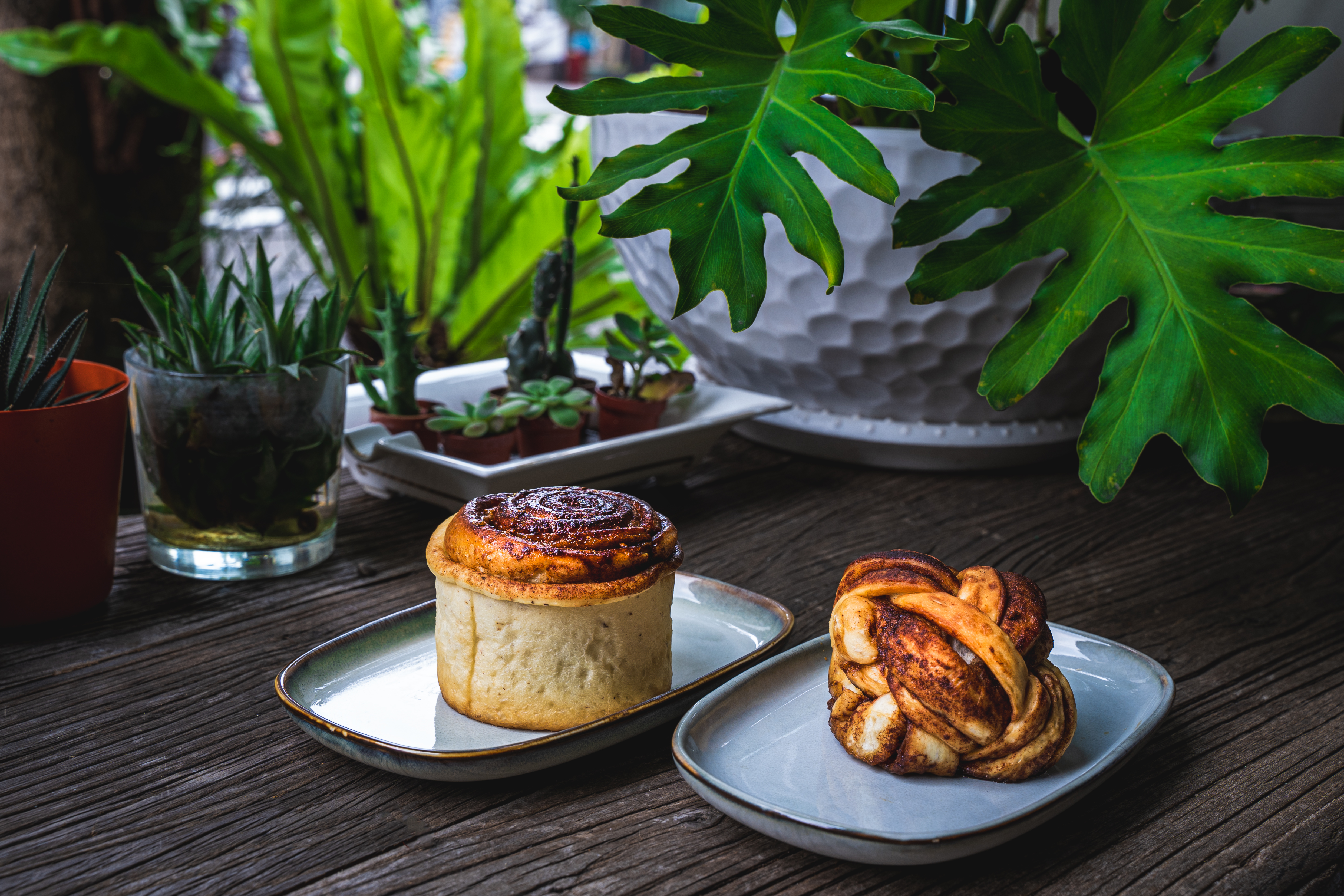 接下來順路經過收藏已久的咖啡店,立刻去買了肉桂捲來嘗嘗!店裡裝潢很特別、感覺老闆很喜歡自行車,也會在IG貼文看到老闆騎車運動超級健康~這次點了兩款風格迥異的肉桂捲,苦艾酒口味一入口就感受到豐富的香料味,麵包體偏乾爽、雖然有糖漿但不會黏稠,算是非常有特色。另一款桂花肉桂捲也是乾捲,聞得到淡淡的桂花香味,肉桂跟桂花的結合非常特別唷!再搭配店內精選的咖啡,苦甜交織的風味讓人回味無窮。